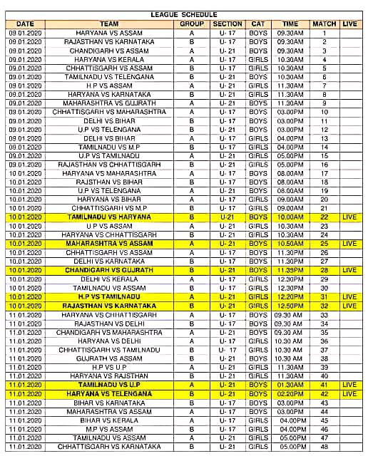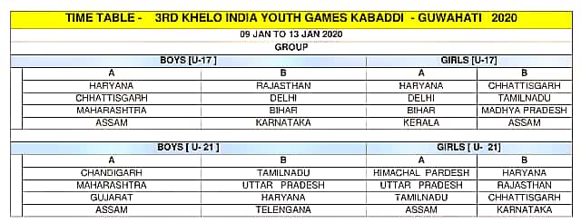 खेलो इंडिया यूथ गेम्स २०२० कबड्डी का पूरा टाईमटेबल।
