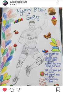 आज का जन्मदिन एक अलग कारण से सूरज के लिए विशेष था। वह इसलिए कि सूरज की पत्नी ने उन्हें जो विशेष गिफ्ट दिया था। सूरज के जन्मदिन के अवसर पर, उनकी पत्नी ने उनके लिए एक ग्रिटींग कार्ड बनाया और उन्हे दिया। उन्होने इस गिफ्ट कार्ड पर सूरज का चित्र बनाया है और उनके लिए एक छोटी कविता भी लिखी है। सूरज ने अपने इंस्टाग्राम पर गिफ्ट कार्ड की एक तस्वीर साझा की और अपनी पत्नी को धन्यवाद दिया।